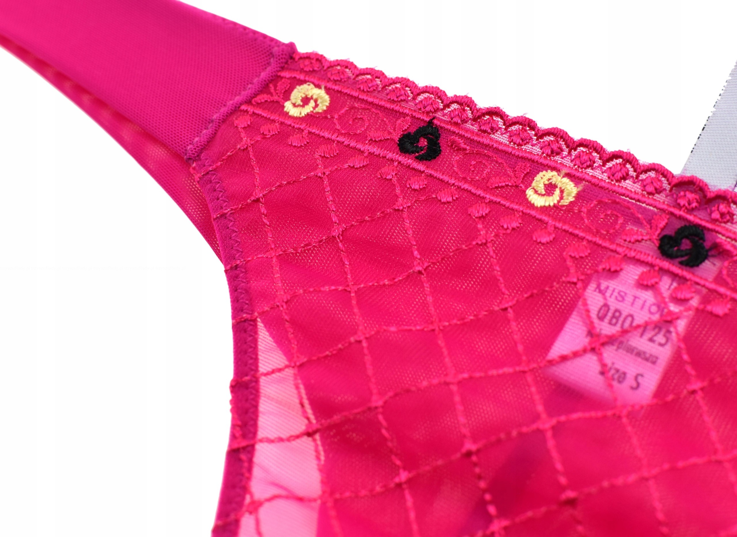 - z przodu geometrycznie skośnie haftowane w kratę