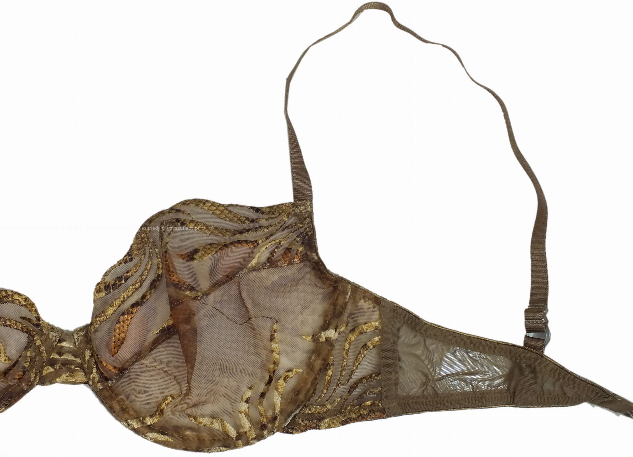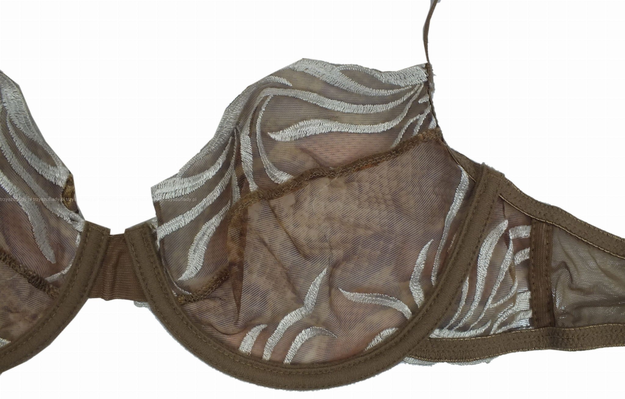 - miseczki i boki stanika z ozdobnym haftem, delikatnie opalizującym