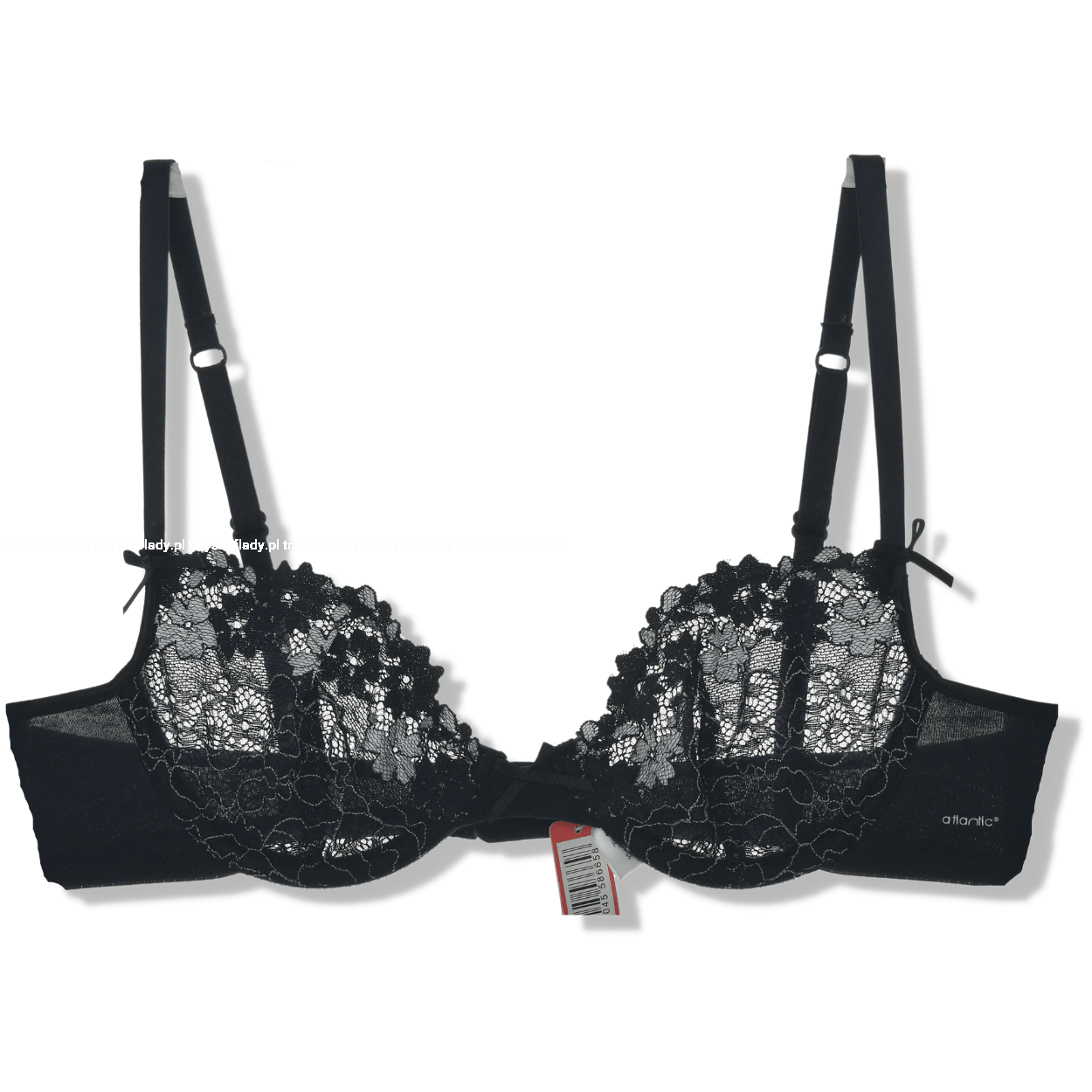 Atlantic biustonosz miękki czarny z miseczkami ozdobionymi kontrastowymi kwiatkami