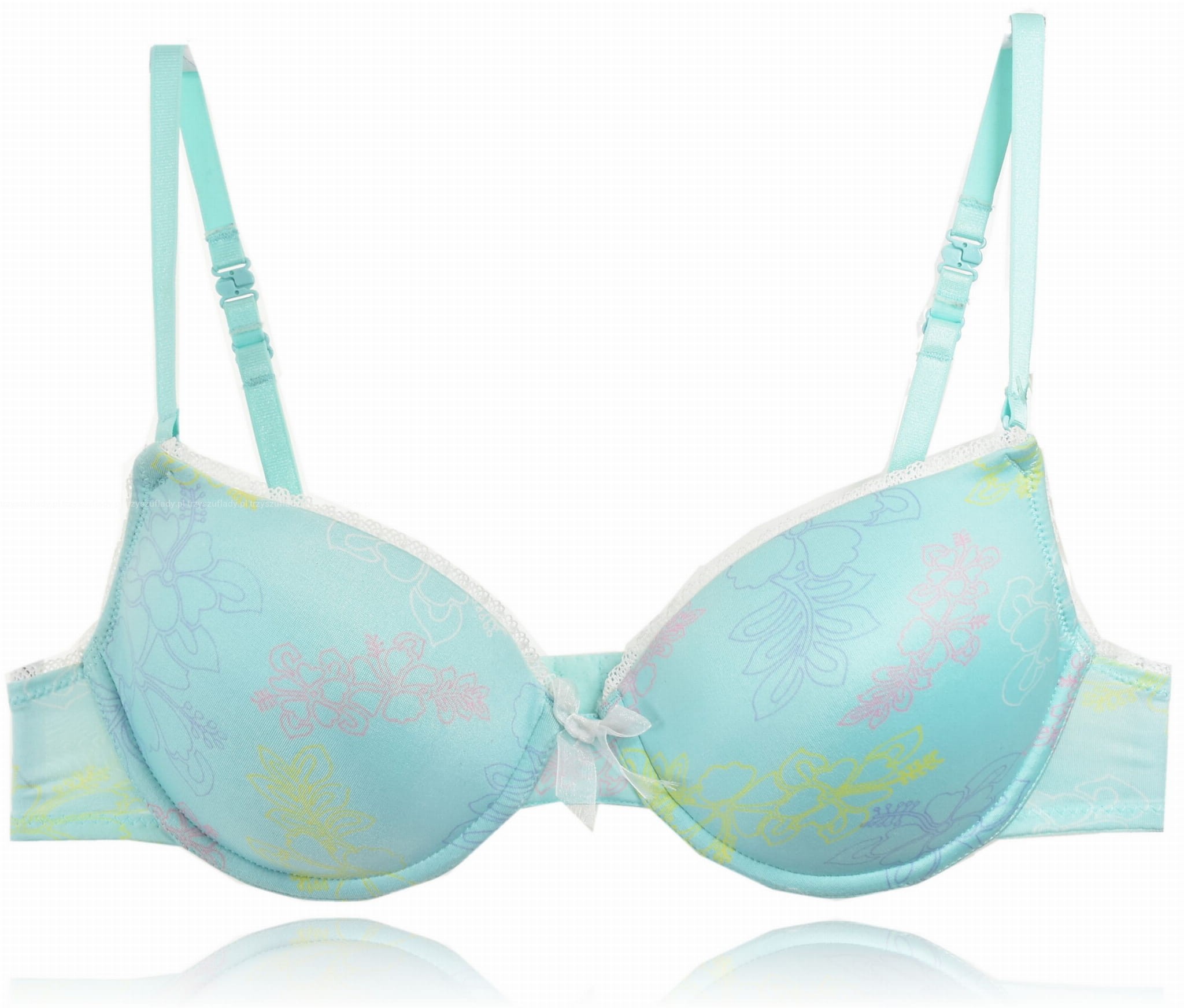 Uroczy biustonosz push up z miseczkami pokrytymi microfibrą w kolorową, pastelową łączkę
