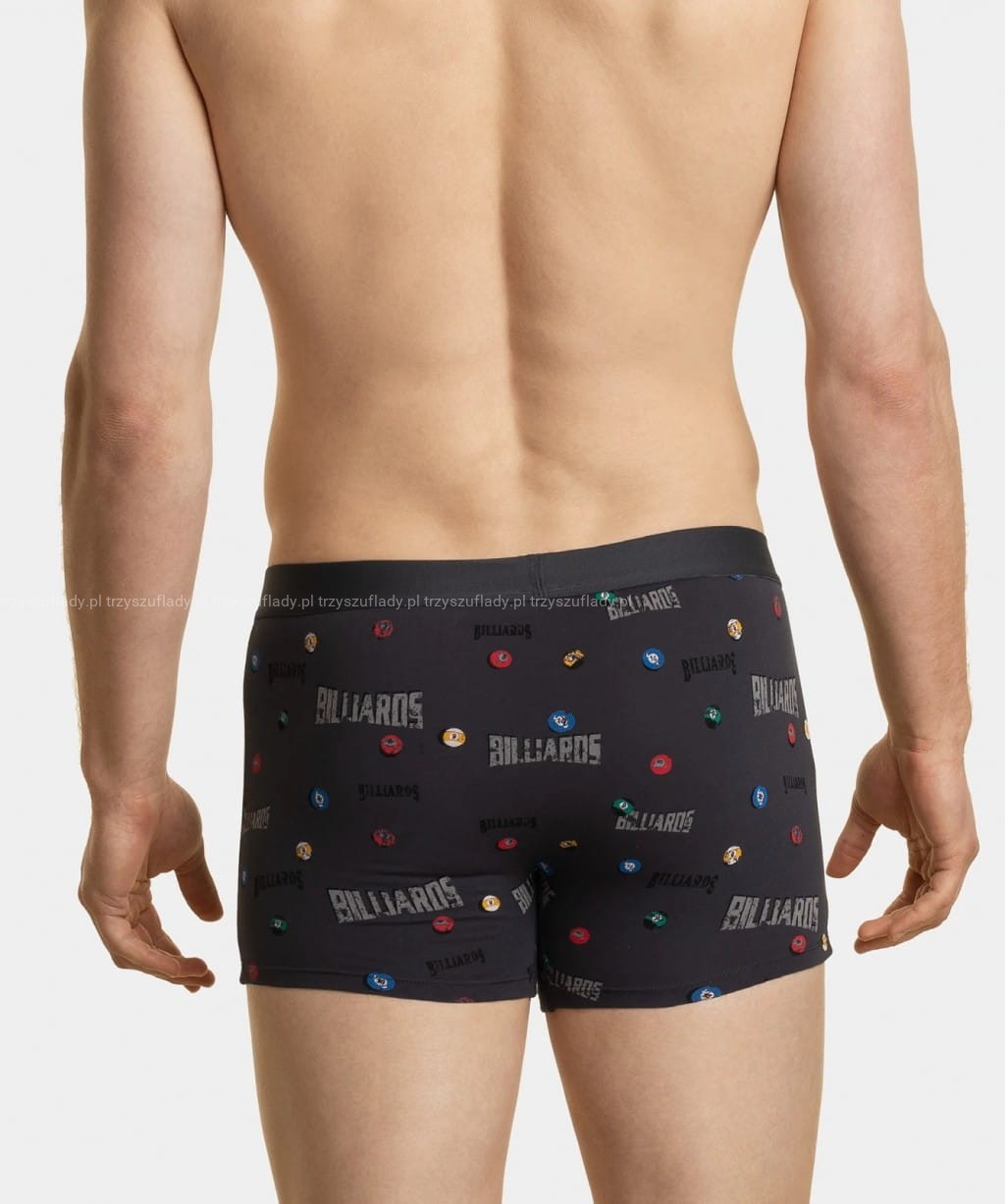 Kolorowe nadruki: Bokserki w trzech różnych odcieniach - grafitowym, granatowym i ciemno-niebieskim - zdobią radosne nadruki w postaci różnokolorowych kul bilardowych. To niepowtarzalny wzór, który dodaje bieliźnie unikalności i oryginalności. W tych bokserkach poczujesz się swobodnie i stylowo.