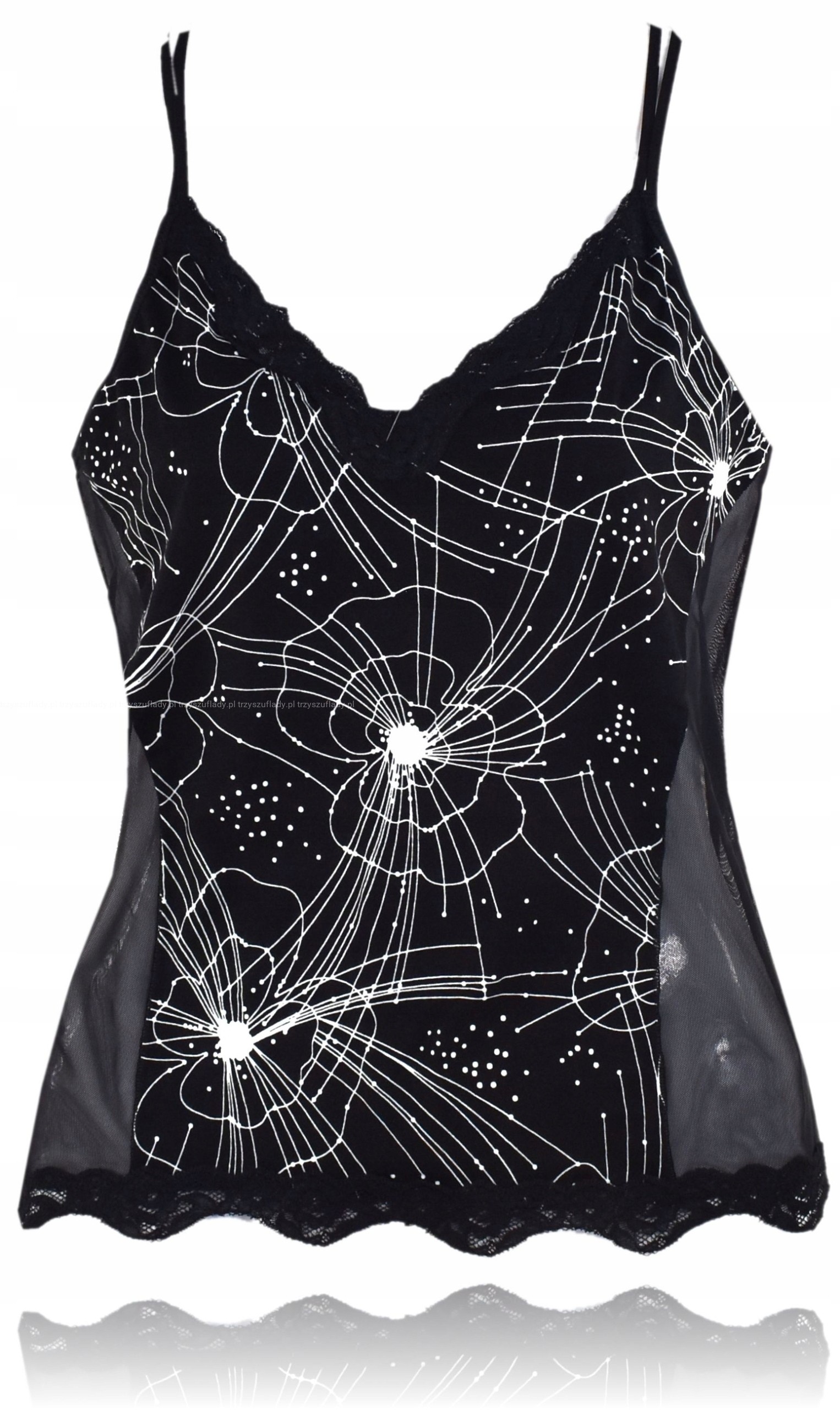 - przód i tył kryjące - po bokach wstawki z transparentnego tiulu