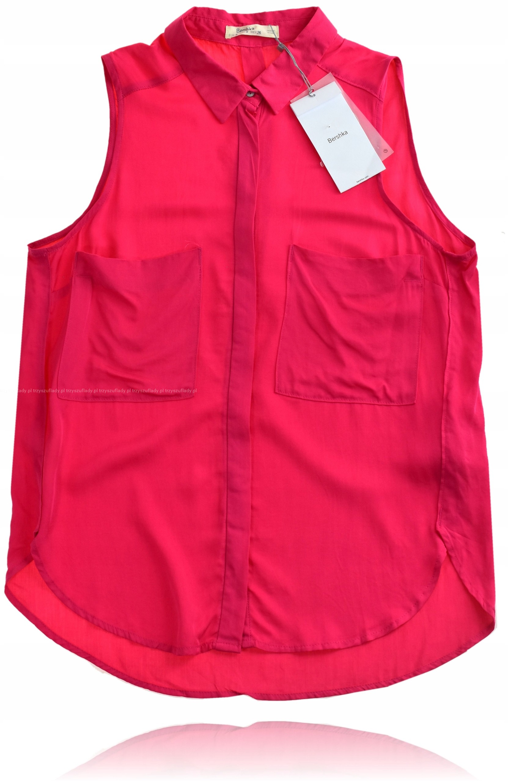 Bershka koszula z kołnierzem i guzikami fuxia