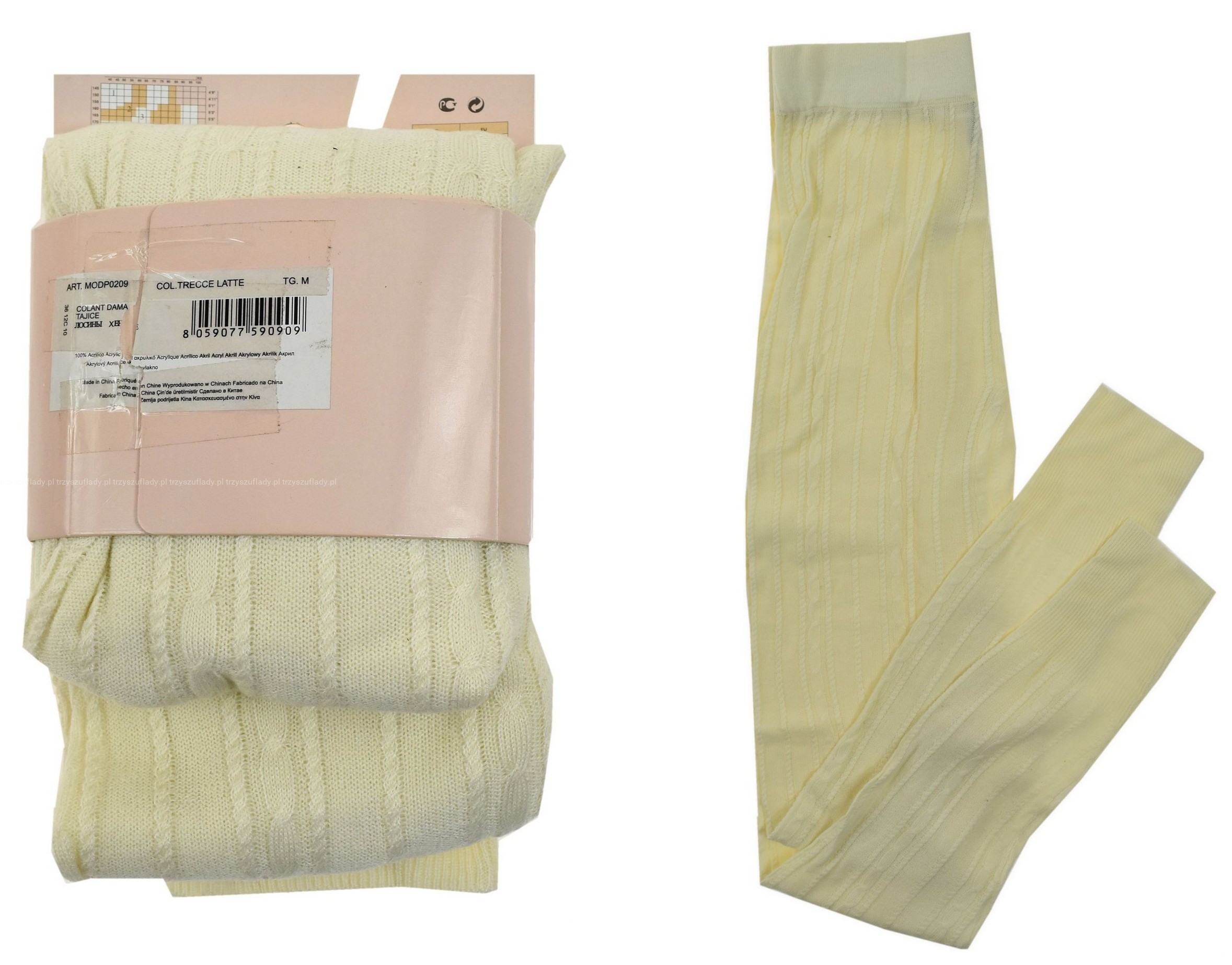 Calzedonia dzianinowe legginsy kolorze ecru w stylu etno