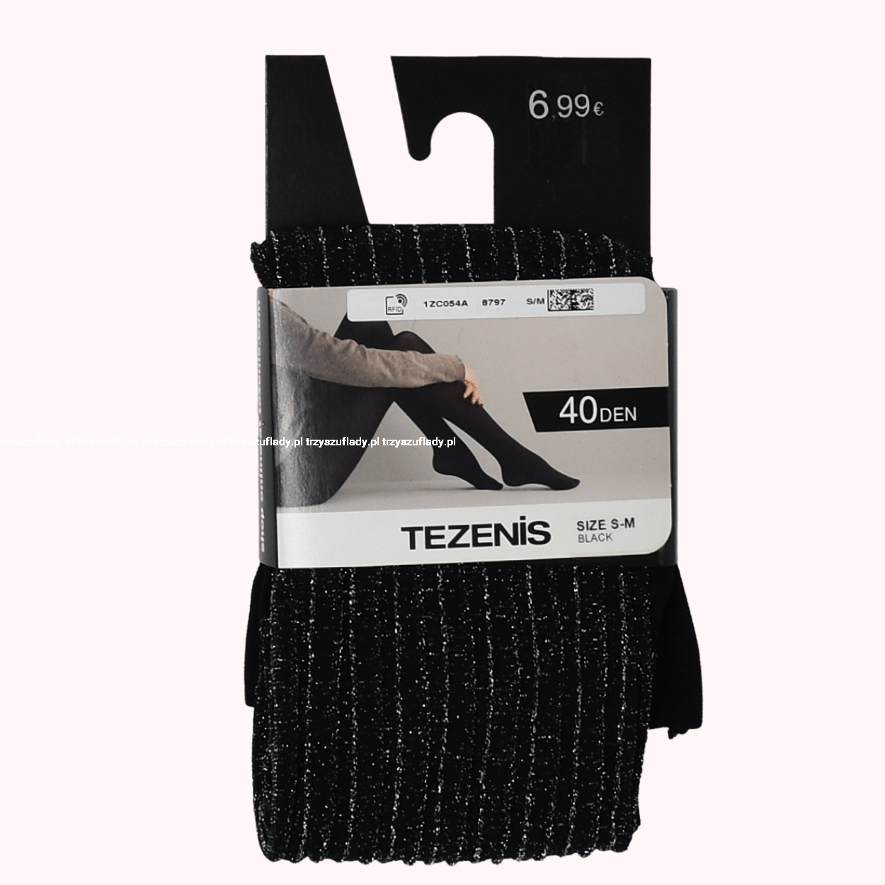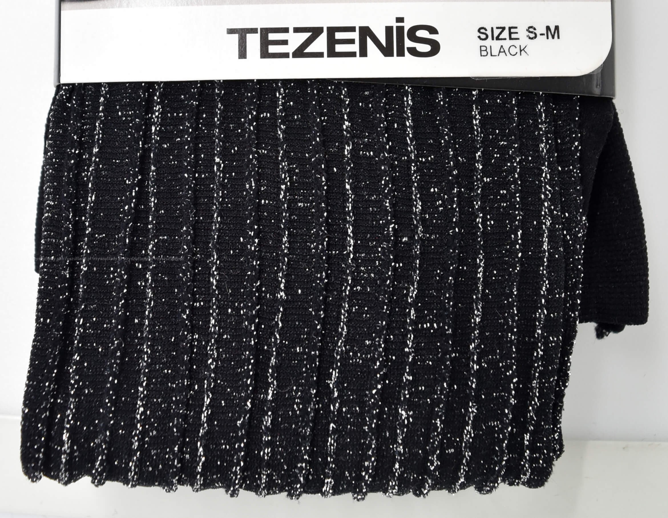 - czarne rajstopy o grubości 40den z prążkami ozdobionymi brokatem,