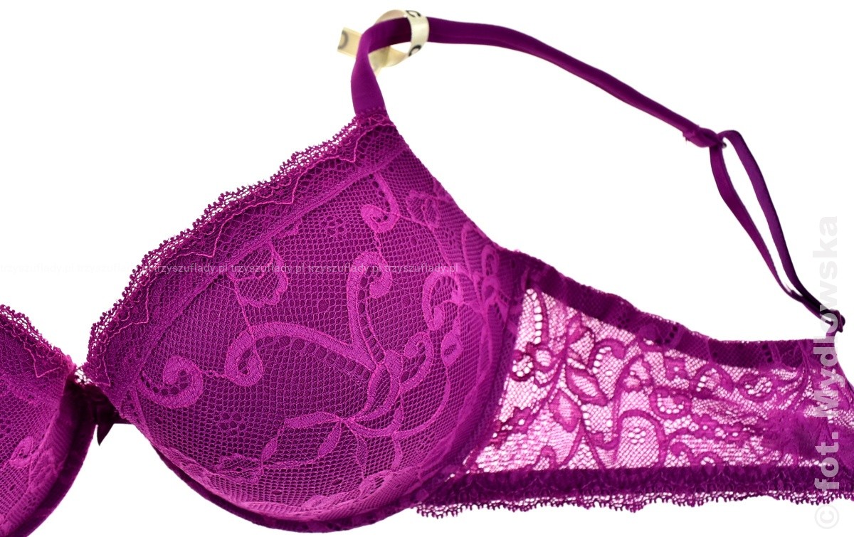 - koronkowe miseczki i boki biustonosza, wewnątrz miękka wyściółka,