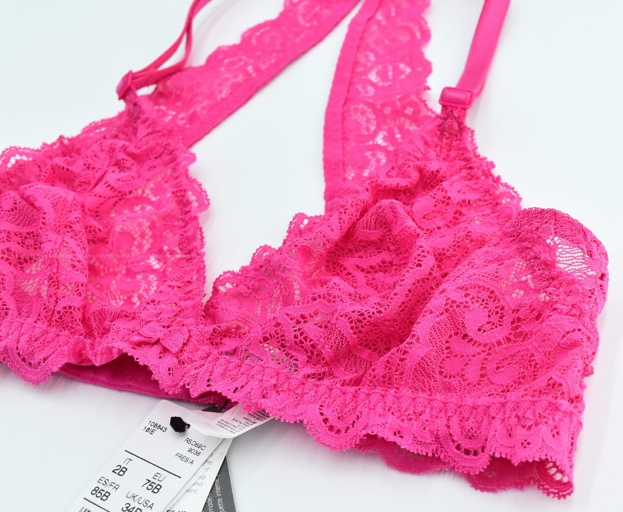 - miseczki bez usztywnień, w kształcie trójkątów, wykonane z pojedynczej warstwy koronki