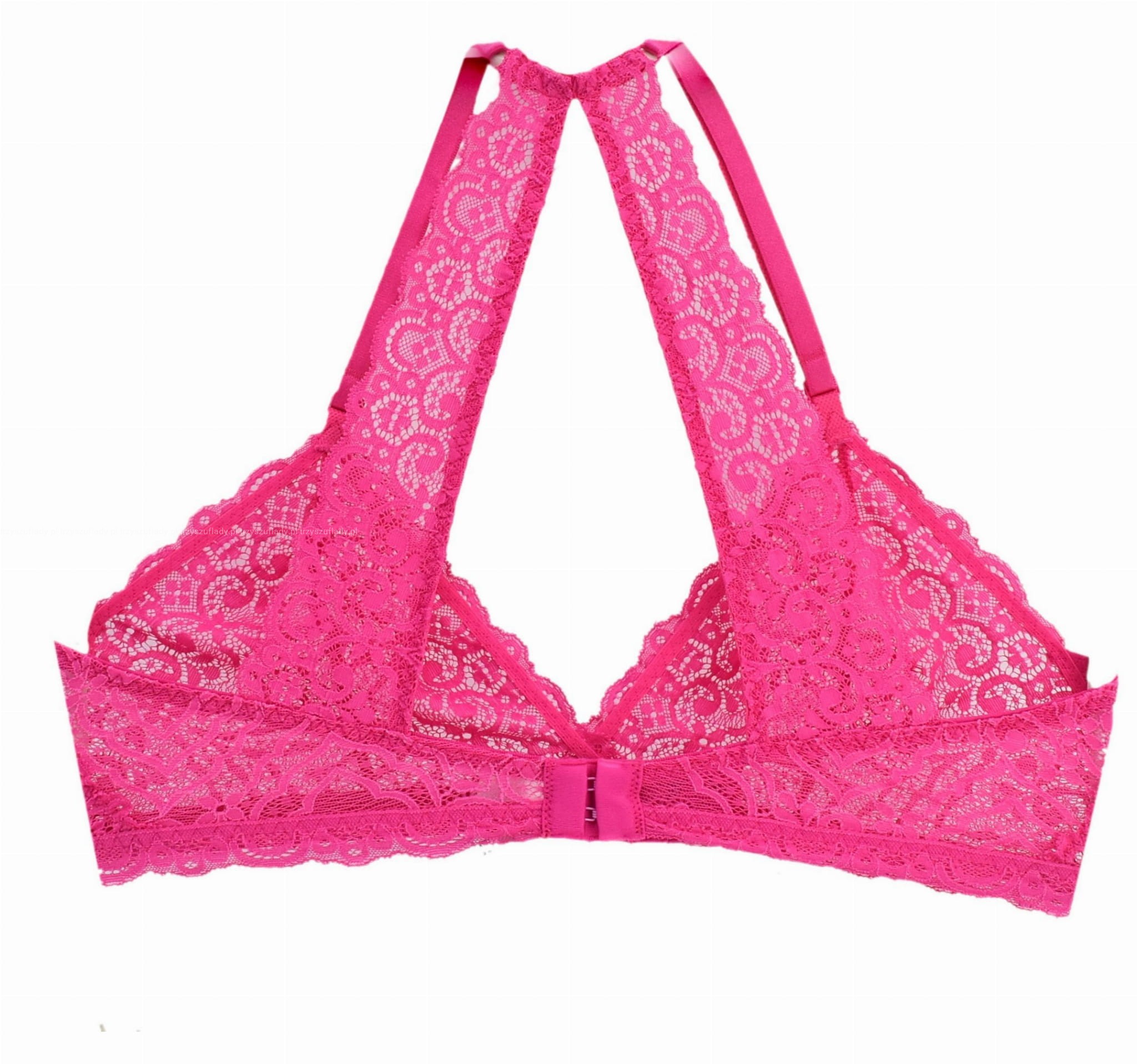 - ramiączka nie odpinane, regulowane, zbierane na karku, tworzące ozdobny koronkowy wzór na plecach