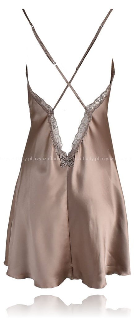 Intimissimi koszulka nocna halka z jedwabiu z koronką beżowa