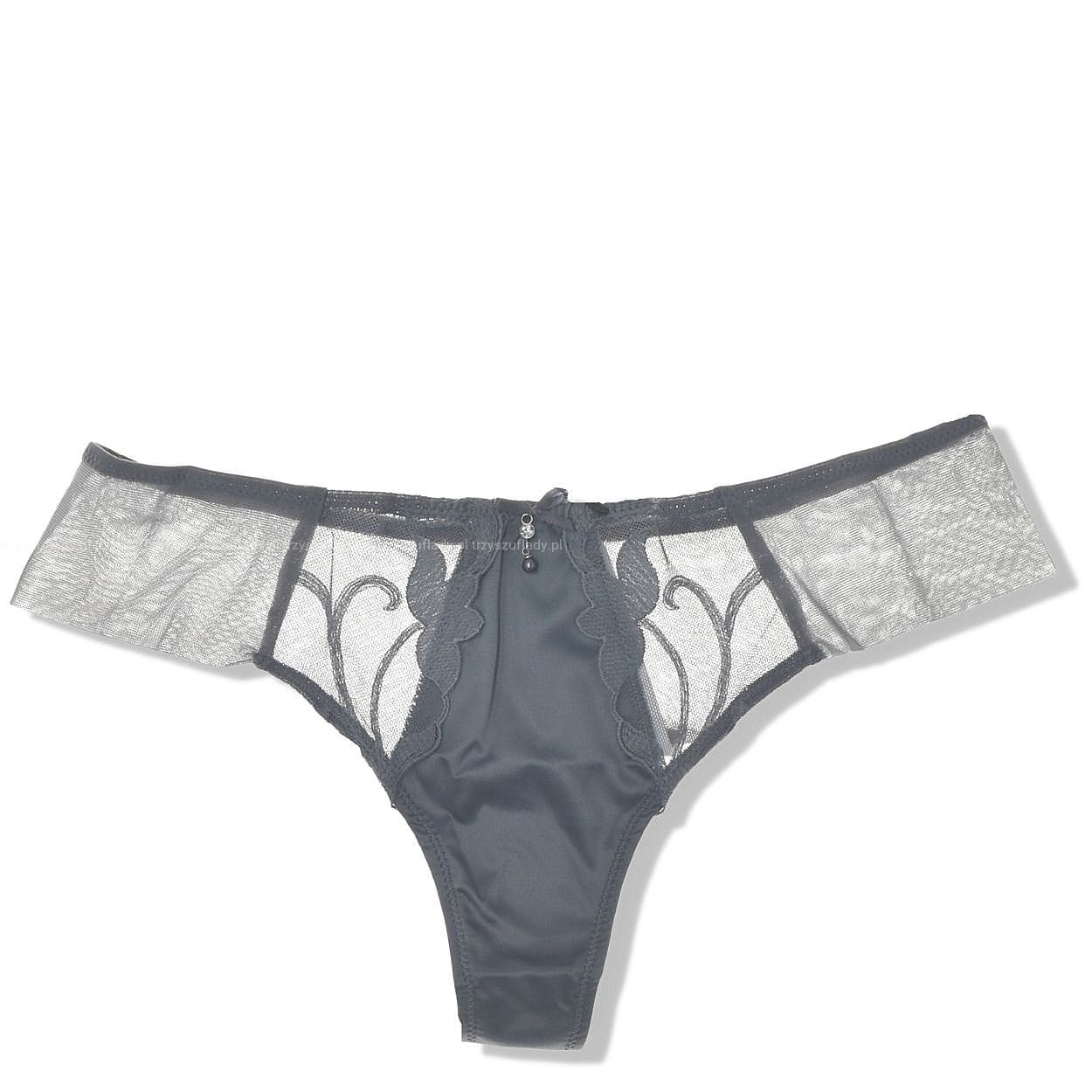 Intimissimi majtki brazyliany w odcieniach popielu z satyną i haftowanym tiulem