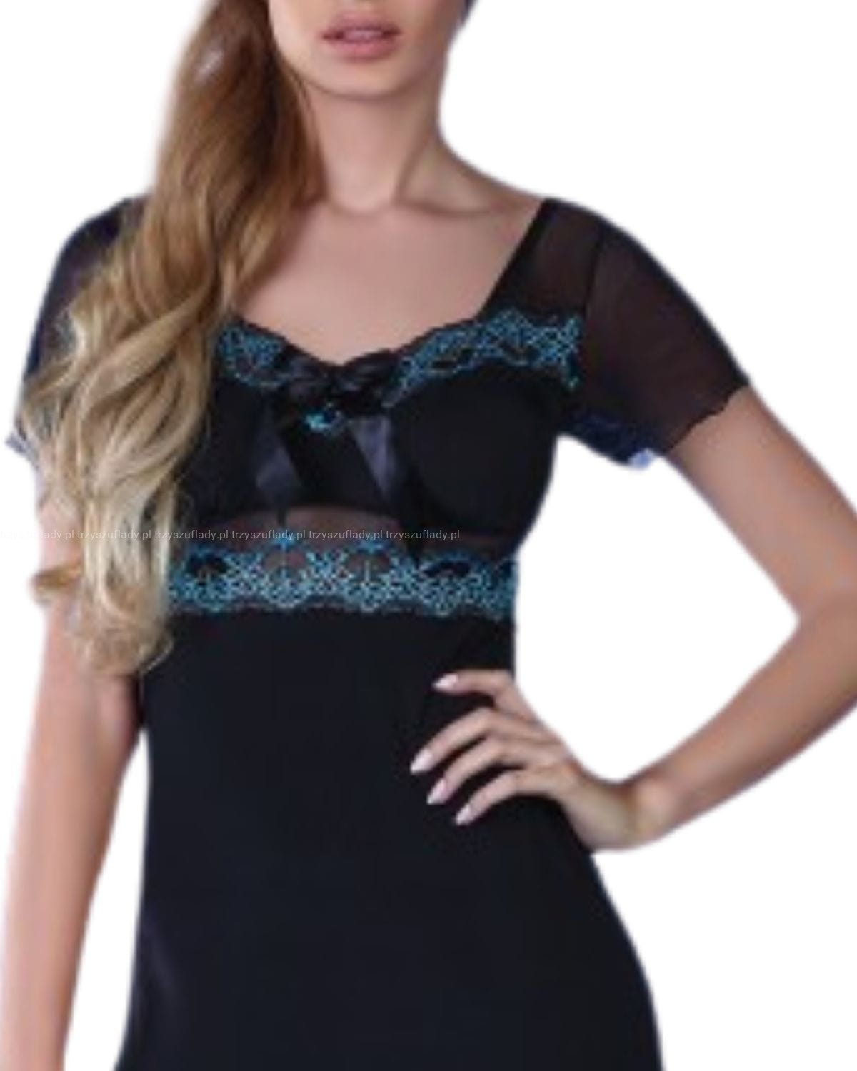 Kolor: Czarny z błękitną koronką