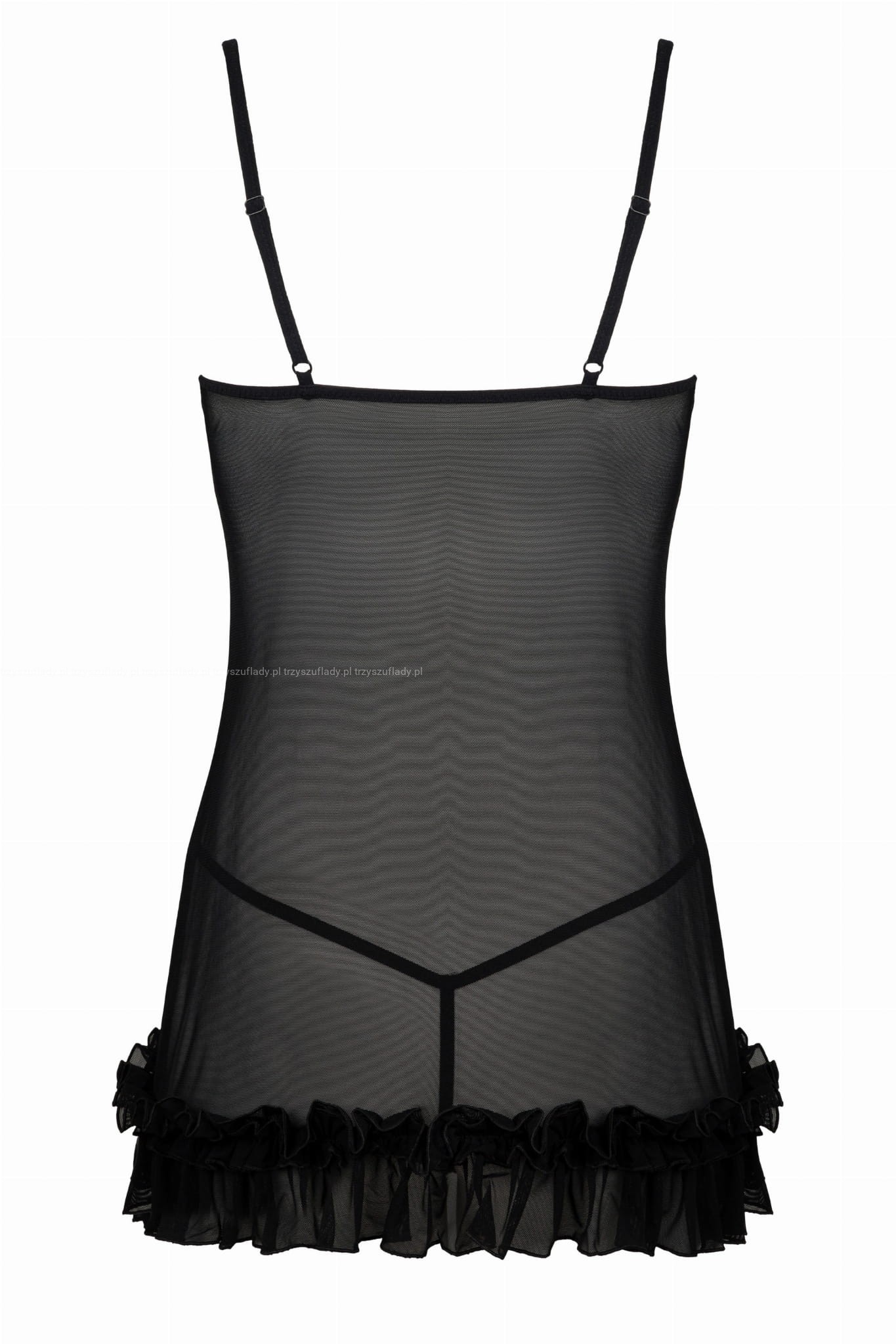Zmysłowa Koszulka Damska Atanis Black w komplecie ze stringami