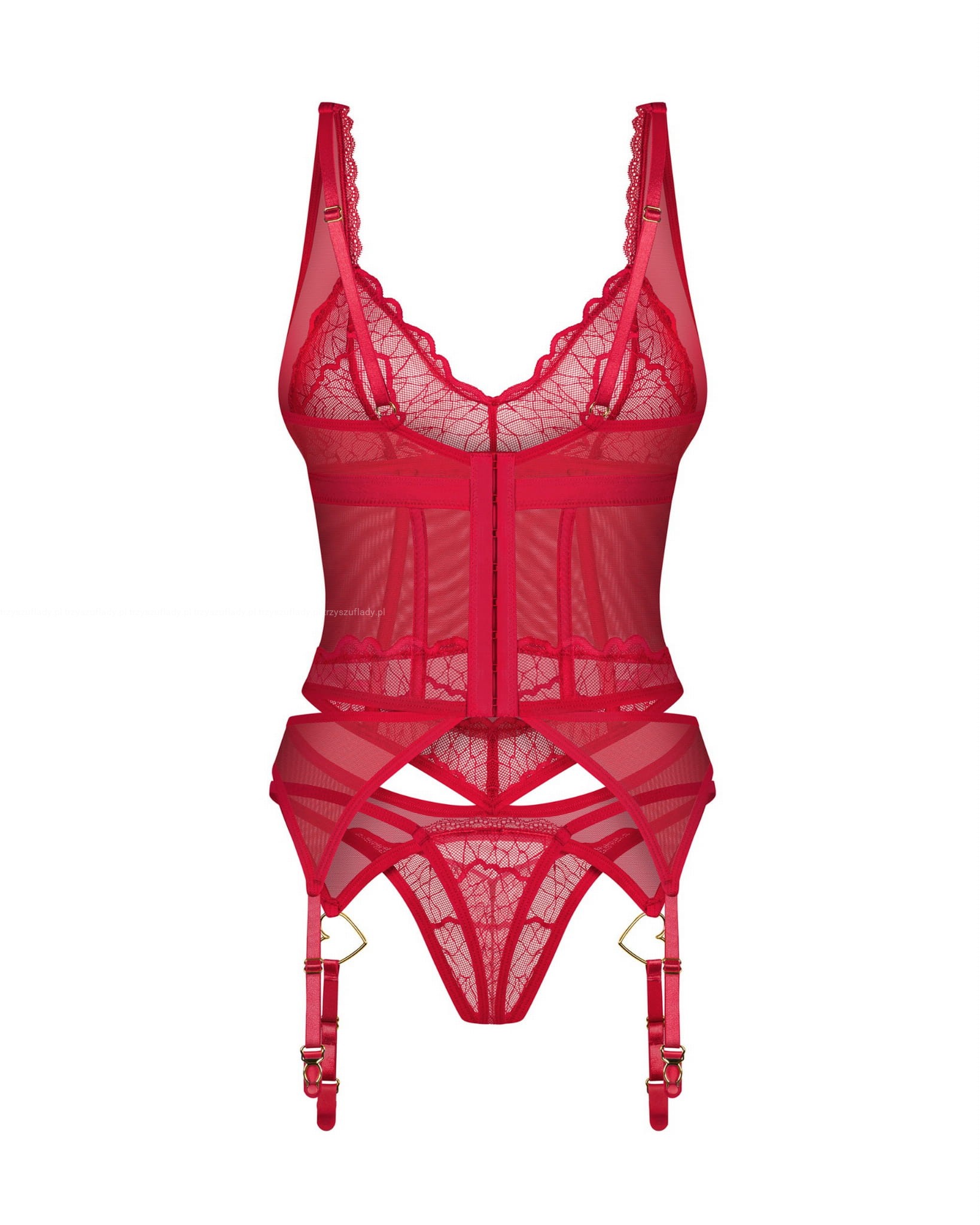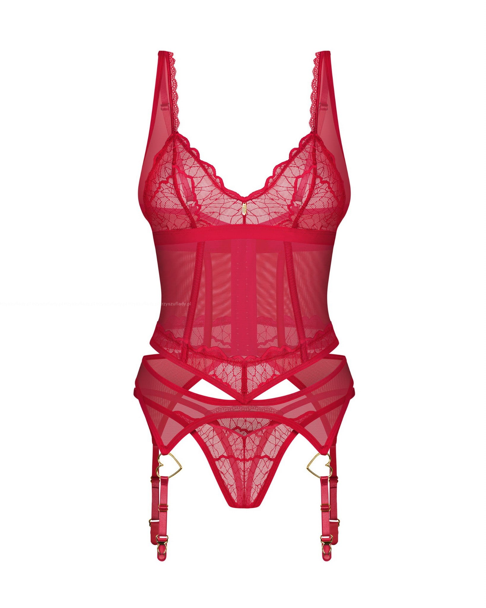 Obsessive GORSET CUPIDE DESIR czerwony z koronki i tiulu