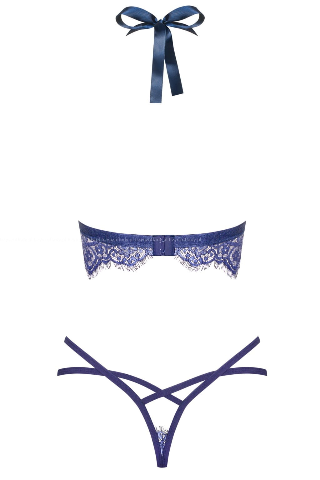 Obsessive KOMPLET 2 CZĘŚCIOWY FLOWLACE niebieski z prześwitującego materiału