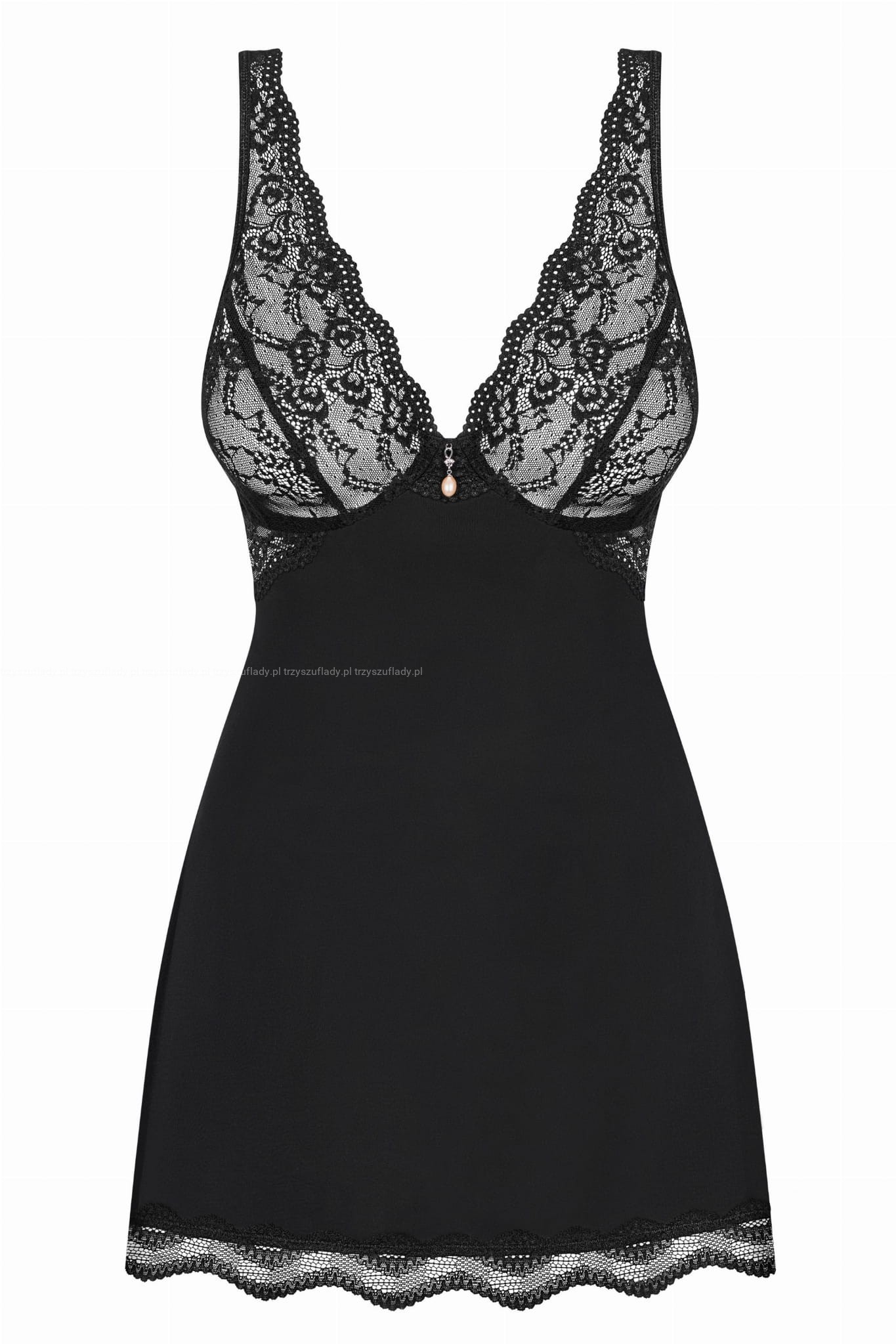 W komplecie znajdują się stringi, które idealnie współgrają z babydollem, tworząc spójną całość, która zachwyca zmysłowością. -