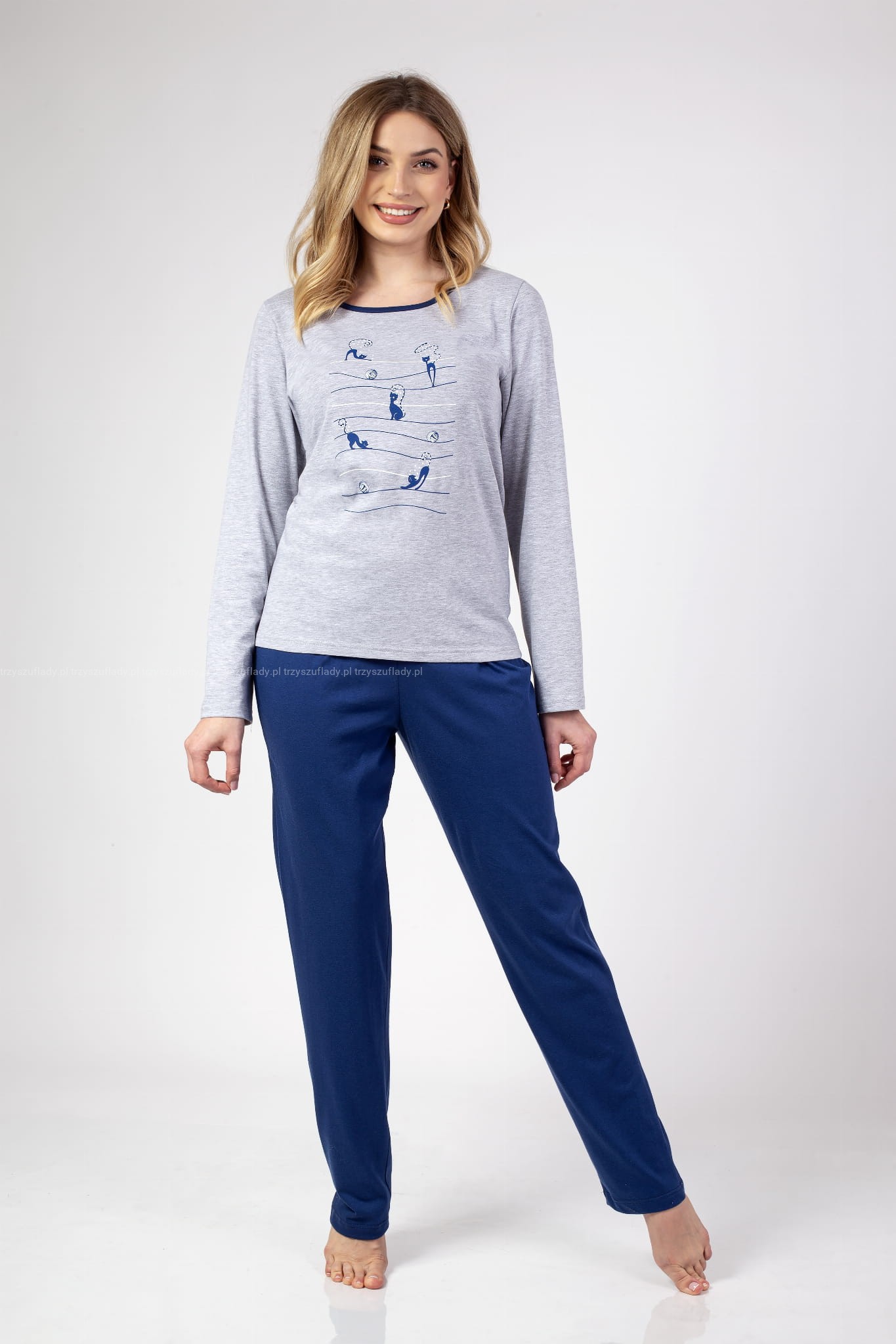 Piżama Damska 668 od REGINA z bawełny z nadrukiem w kotki