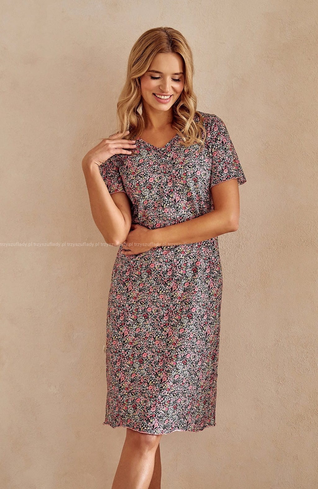 Taro Amara koszula nicna uroczym nadrukiem w kwiaty z krótkim rękawem