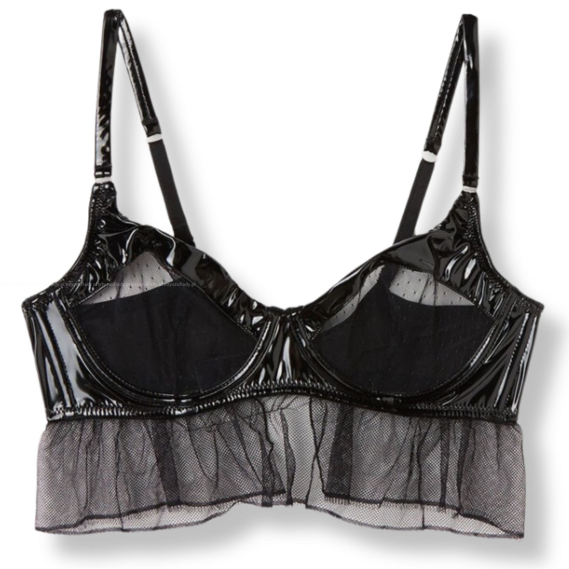 Tezenis biustonosz miękki czarny z tiulem i wstawkami z Vinylu