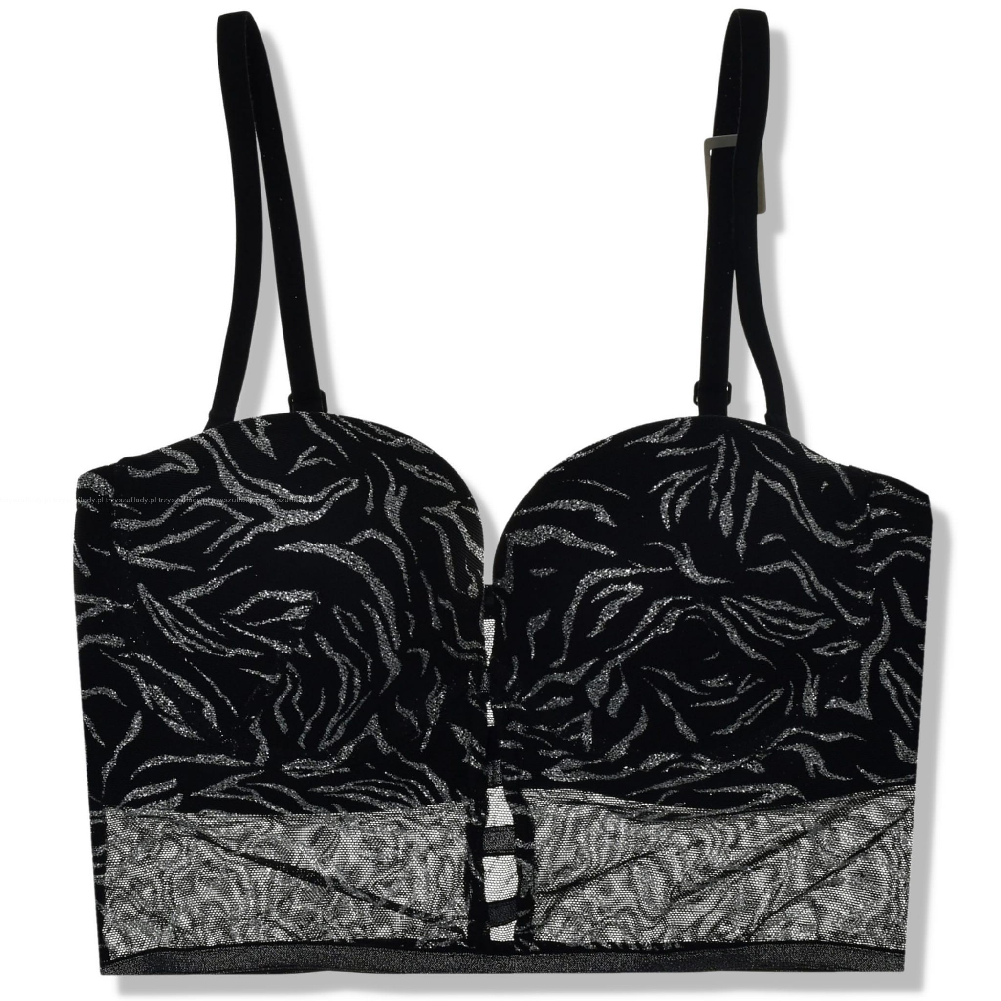 Tezenis Animal Party biustonosz o lekkim usztywnieniu misek, minigorset z brokatowym zwierzęcym wzorem, samonośny