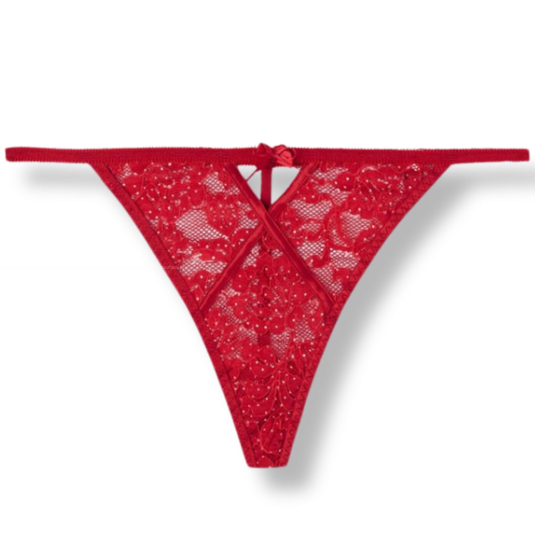 - Ozdobna Satyna: Ozdobna satyna wykończeń nadaje stringom elegancji i luksusowego wyglądu.