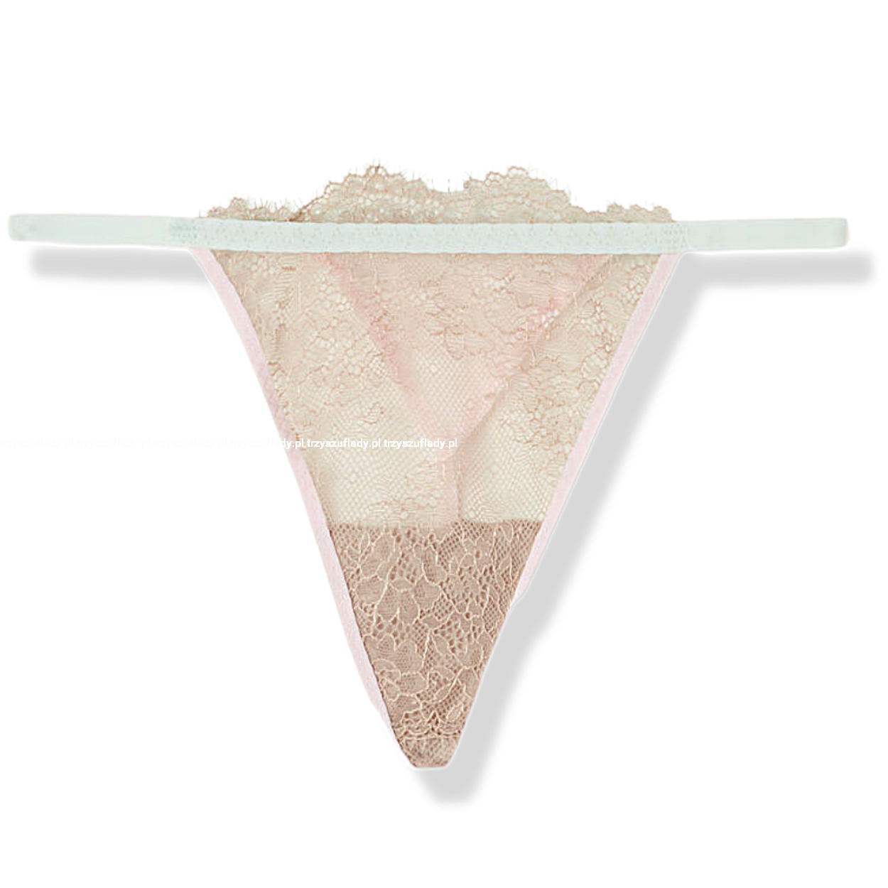 - wykonane z tiulu i koronki w cielistym kolorze z wykończeniami w kolorze satynowego różu i pastelowego błękitu.Transparentna koronka podkreśla subtelny charakter kolekcji Sugar Lace.
