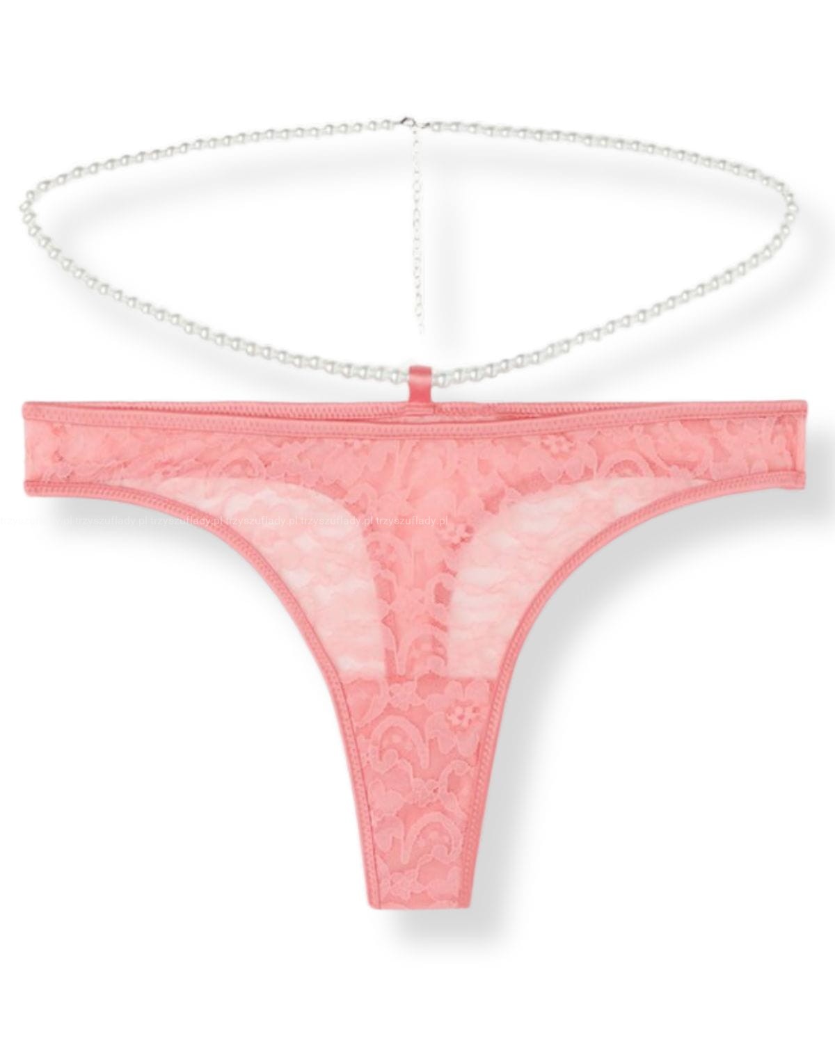 Ozdobione perłowymi koralikami, które oplatają talię, dodając unikalnego, luksusowego akcentu, sprawiają, że bielizna wygląda wyjątkowo i przyciąga wzrok. Paz z pereł można dopasować do wymiarów talii regulowanymi łańcuszkami -