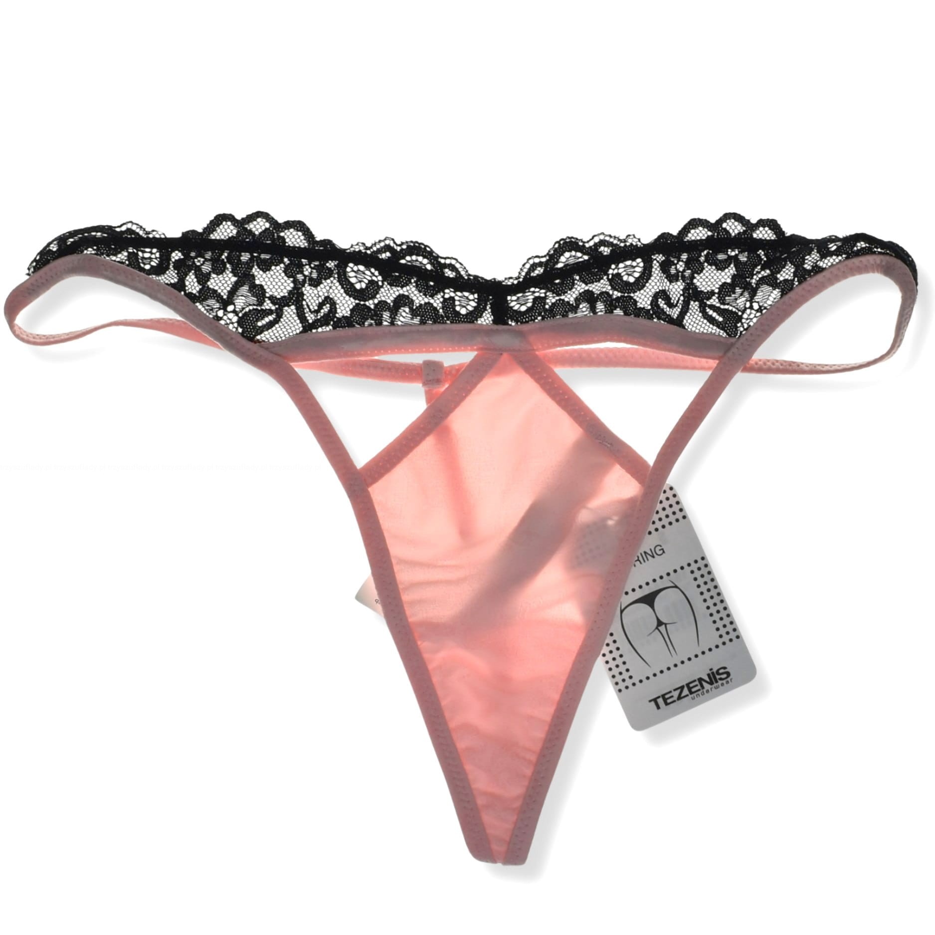 Tezenis majtki stringi z paseczkami satyna z koronką