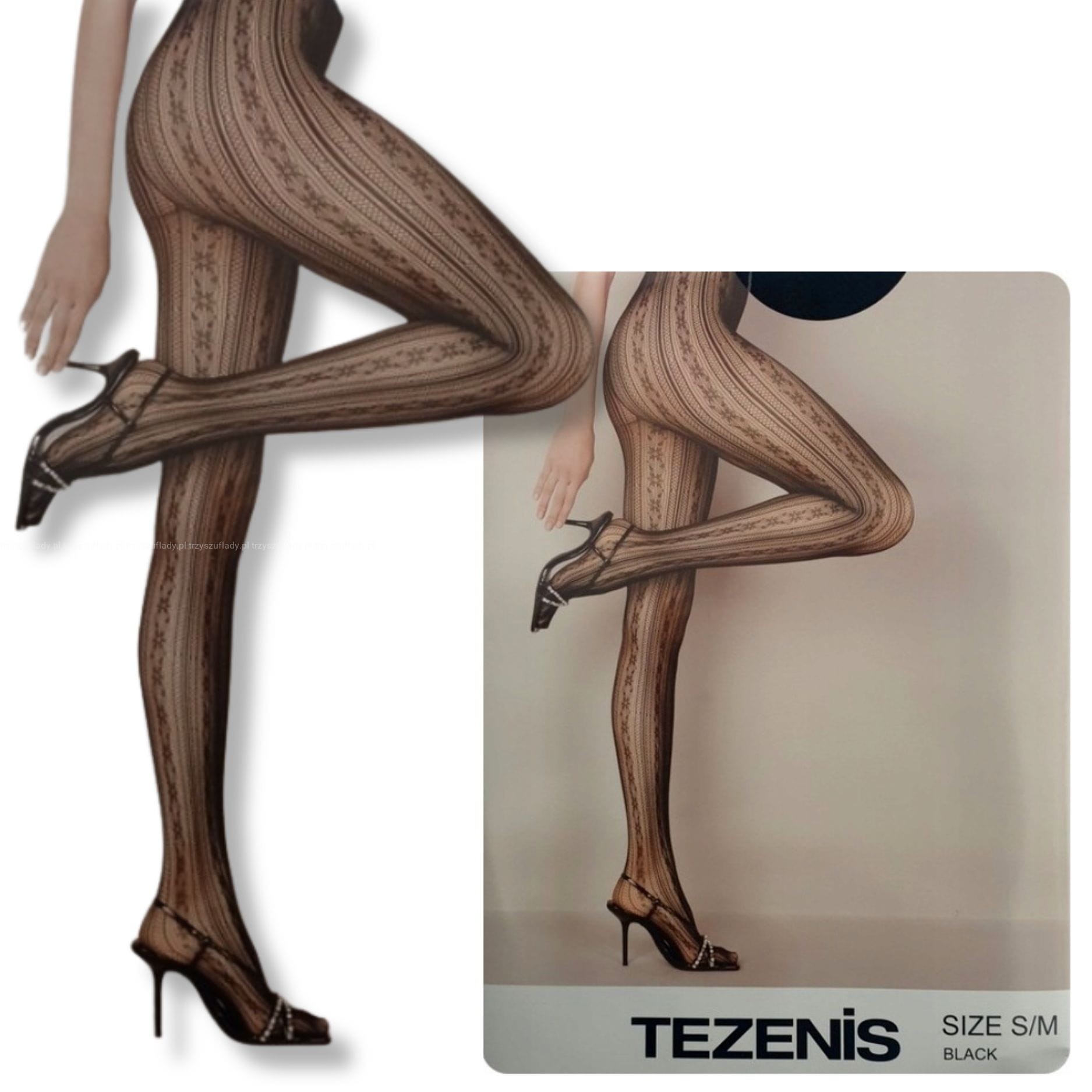 - wzór ażurowy, pionowe paski wysmuklające optycznie nogi,