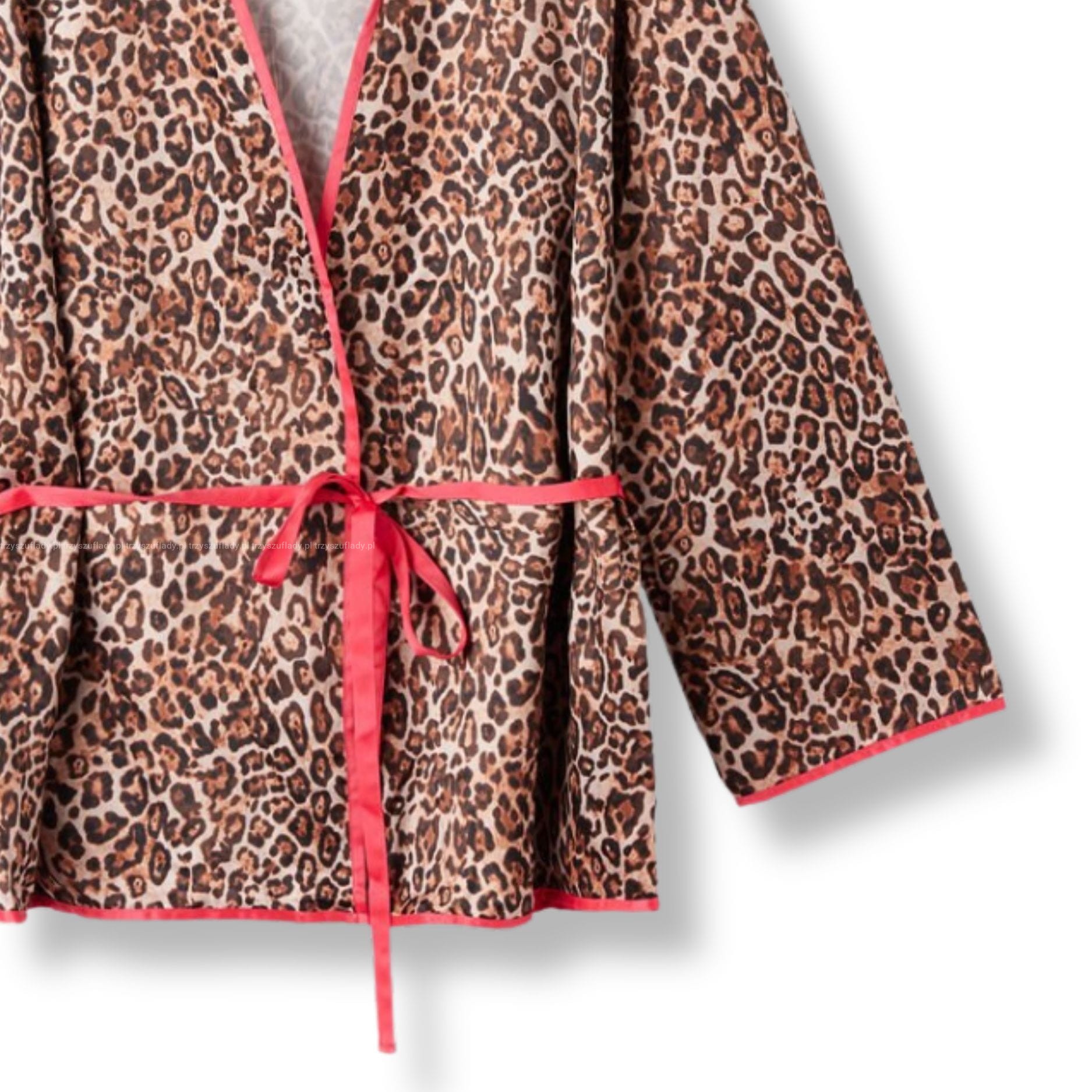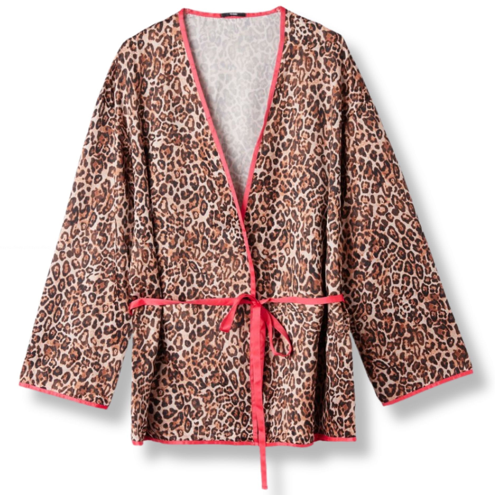 Tezenis krótki wiązany kimonowy szlafrok w panterkę
