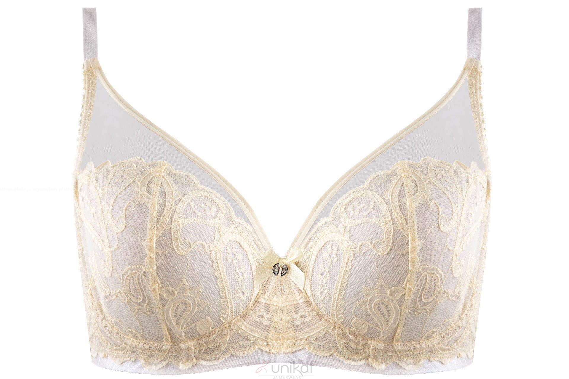 Unikat Oksana biustonosz typu soft na fiszbinach z transparentnego tiulu i koronki